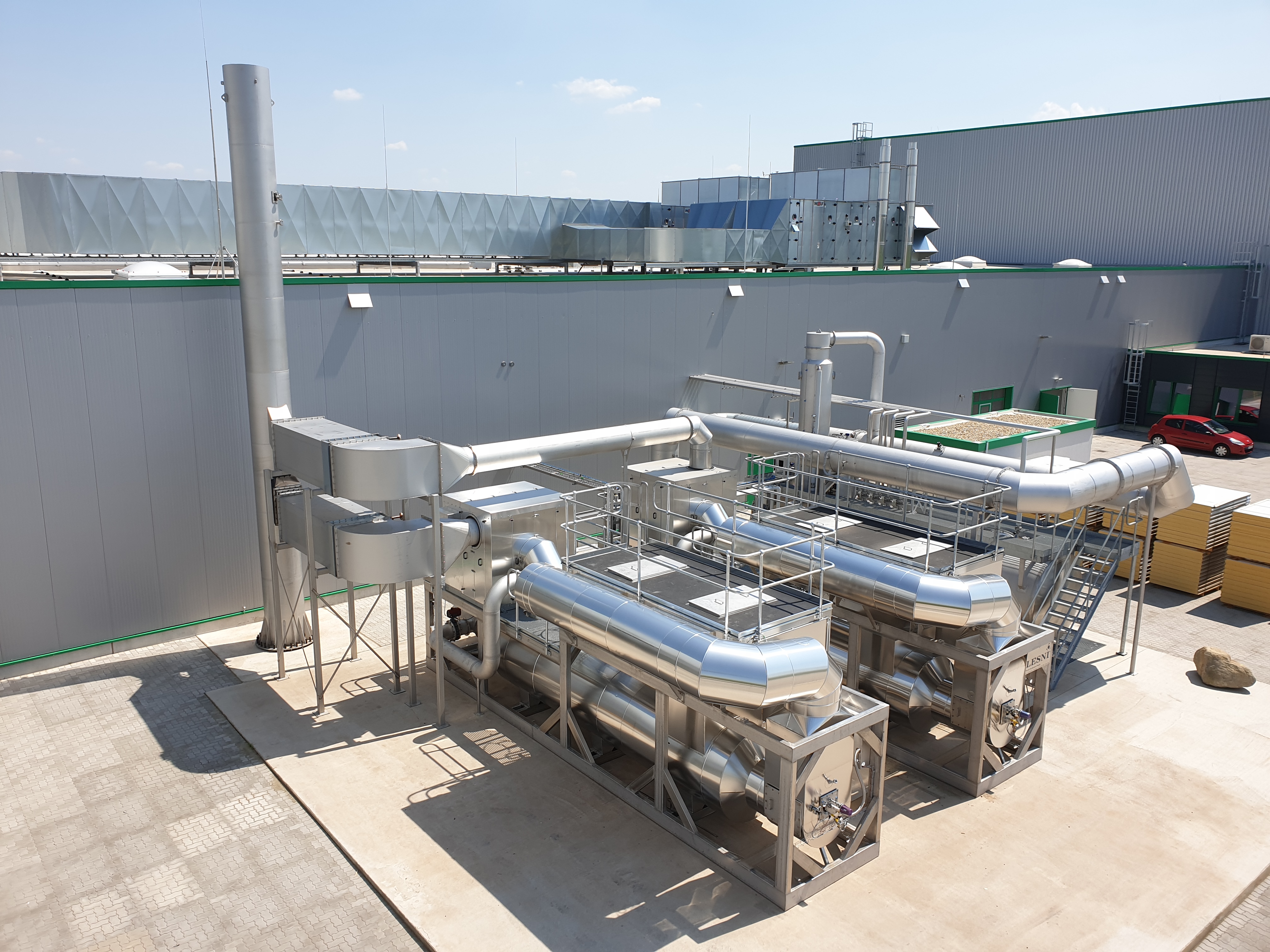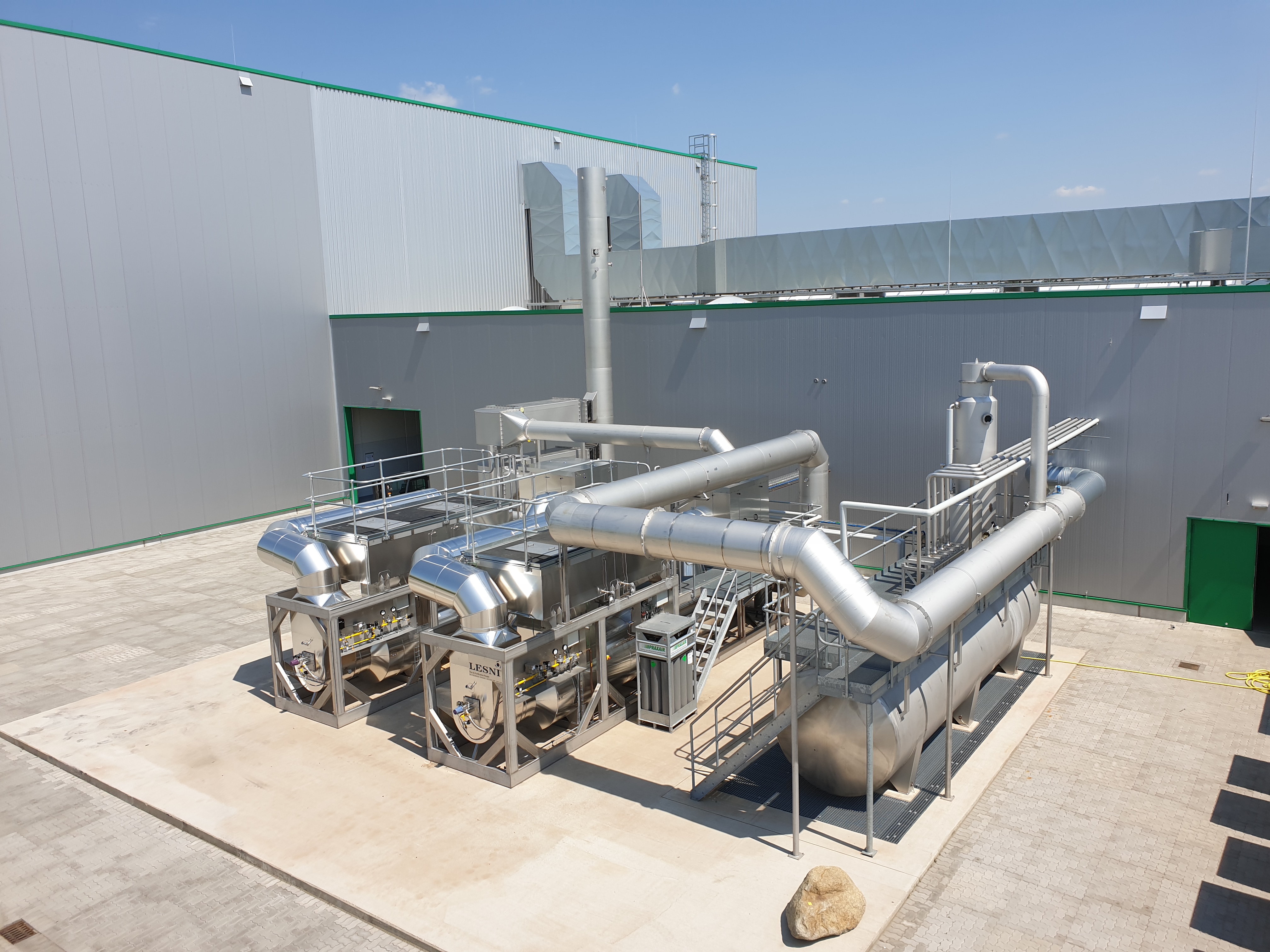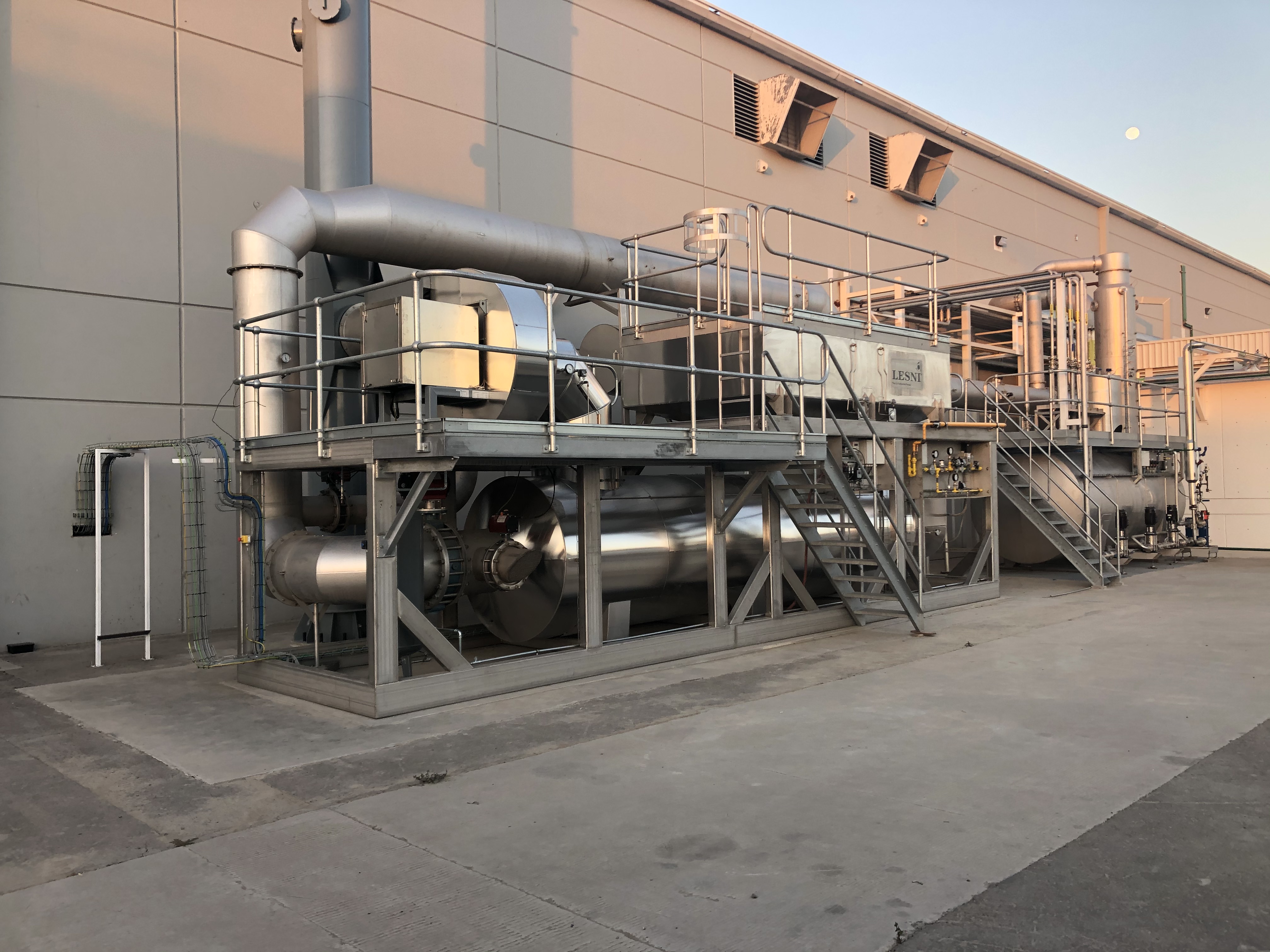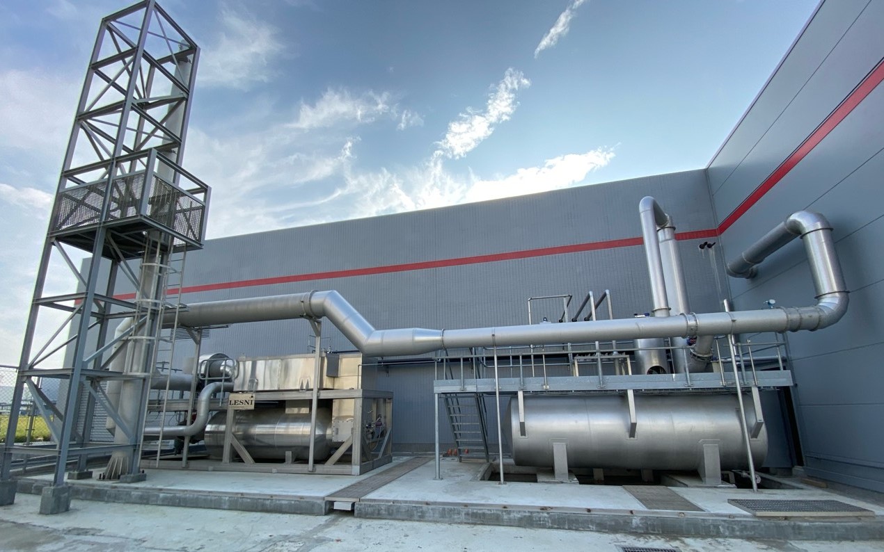 The LESNI Catalytic Abatement Plant for ethylene oxide (EO CAP) is installed to purify exhaust air from production facilities or processes contaminated with organic compounds, which does not contain any components that can poison the catalyst. The organic pollutants are converted into CO2 and H2O on condition that all pollutants are compounds containing only carbon, hydrogen, nitrogen and oxygen.